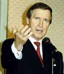 過日の平成13年11月7日開催のフォーラムは日米安全保障条約交流事業の一環とし、また締結50周年の記念行事として米国より国防長官顧問ウィリアム・シュナイダー博士ならびに元国防副長官ジョン・J・ハムレ博士を招聘して行われました。フォーラムには特別来賓として駐日米国大使